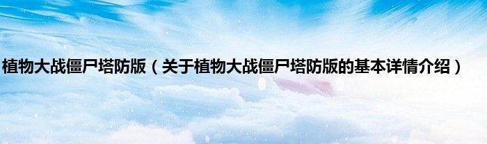 本文关于植物大战僵尸塔防版的基本详情介绍就讲解完毕,希望对大家有所帮助。