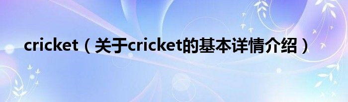 本文关于cricket的基本详情介绍就讲解完毕,希望对大家有所帮助。