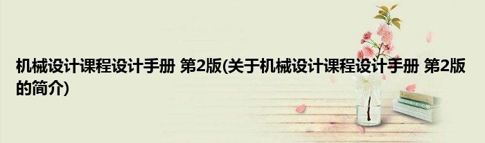 机械设计课程设计手册第2版(关于机械设计课程设计手册第2版的简介)