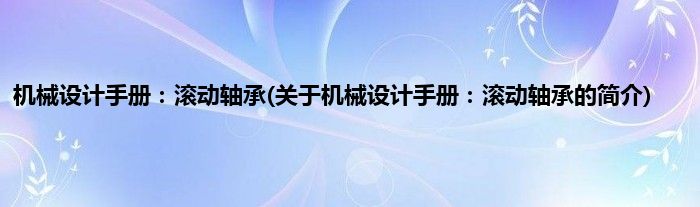 本文关于机械设计手册:滚动轴承的简介就讲解完毕,希望对大家有所帮助。