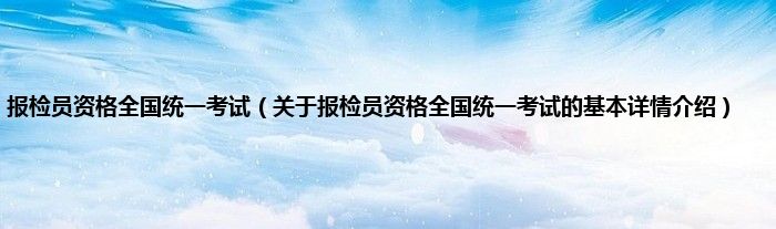 本文关于报检员资格全国统一考试的基本详情介绍就讲解完毕,希望对大家有所帮助。
