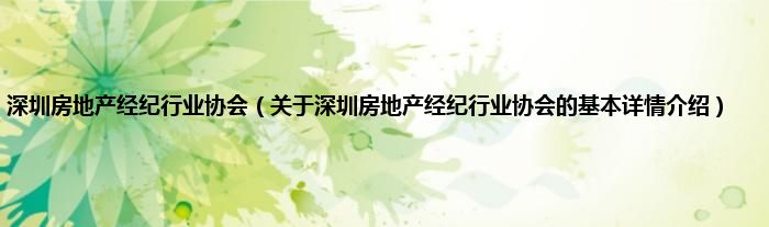 本文关于深圳房地产经纪行业协会的基本详情介绍就讲解完毕,希望对大家有所帮助。