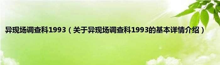 本文关于异现场调查科1993的基本详情介绍就讲解完毕,希望对大家有所帮助。