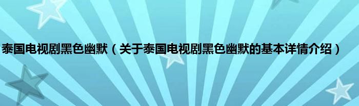 本文关于泰国电视剧黑色幽默的基本详情介绍就讲解完毕,希望对大家有所帮助。