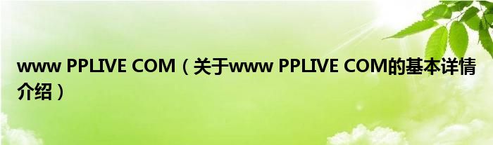 本文关于www PPLIVE COM的基本详情介绍就讲解完毕,希望对大家有所帮助。