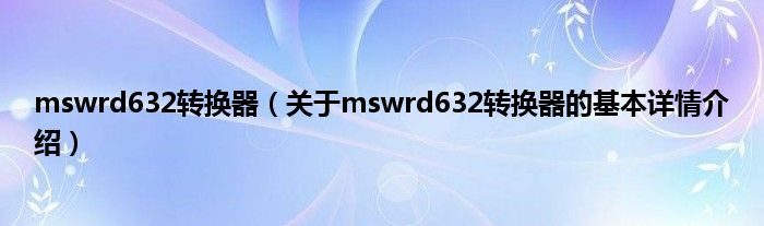 mswrd632转换器(关于mswrd632转换器的基本详情介绍)