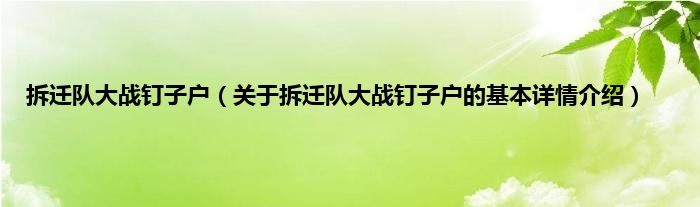 本文关于拆迁队大战钉子户的基本详情介绍就讲解完毕,希望对大家有所帮助。