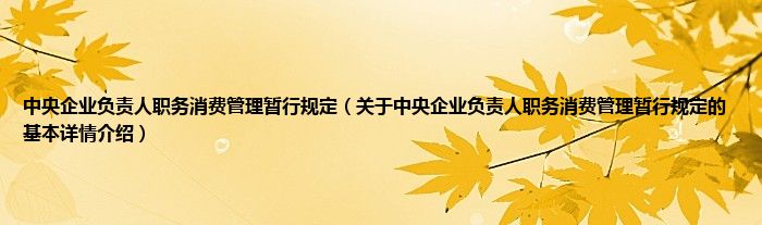 本文关于中央企业负责人职务消费管理暂行规定的基本详情介绍就讲解完毕,希望对大家有所帮助。