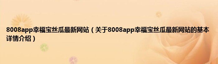 本文关于8008app幸福宝丝瓜最新网站的基本详情介绍就讲解完毕,希望对大家有所帮助。