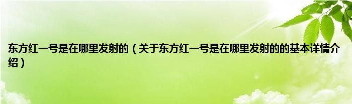 本文关于东方红一号是在哪里发射的的基本详情介绍就讲解完毕,希望对大家有所帮助。