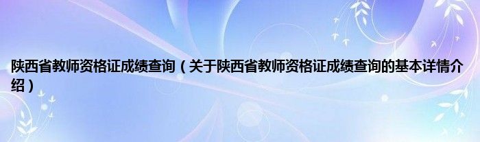 本文关于陕西省教师资格证成绩查询的基本详情介绍就讲解完毕,希望对大家有所帮助。