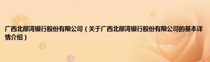 本文关于广西北部湾银行股份有限公司的基本详情介绍就讲解完毕,希望对大家有所帮助。