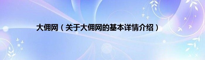 本文关于大佣网的基本详情介绍就讲解完毕,希望对大家有所帮助。