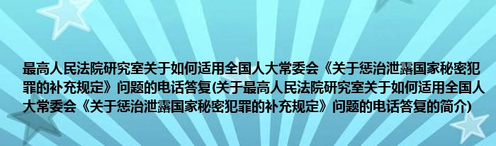 本文关于最高人民法院研究室关于如何适用全国人大常委会《关于惩治泄露国家秘密犯罪的补充规定》问题的电话答复的简介就讲解完毕,希望对大家有所帮助。
