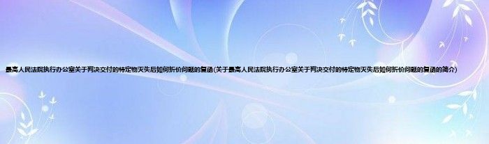 本文关于最高人民法院执行办公室关于判决交付的特定物灭失后如何折价问题的复函的简介就讲解完毕,希望对大家有所帮助。