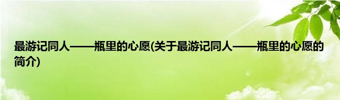 最游记同人——瓶里的心愿(关于最游记同人——瓶里的心愿的简介)