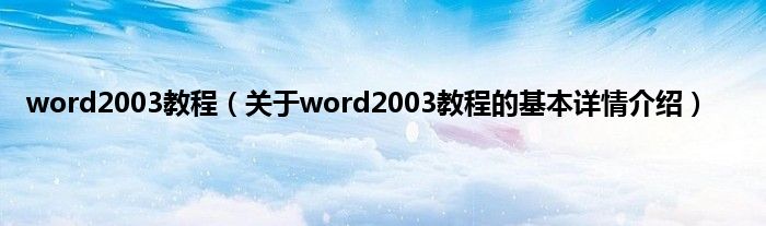 本文关于word2003教程的基本详情介绍就讲解完毕,希望对大家有所帮助。