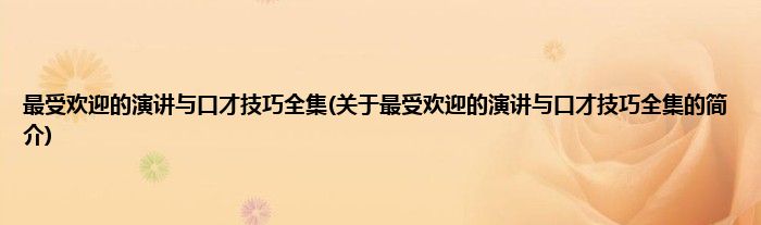 本文关于最受欢迎的演讲与口才技巧全集的简介就讲解完毕,希望对大家有所帮助。