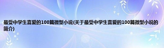 本文关于最受中学生喜爱的100篇微型小说的简介就讲解完毕,希望对大家有所帮助。
