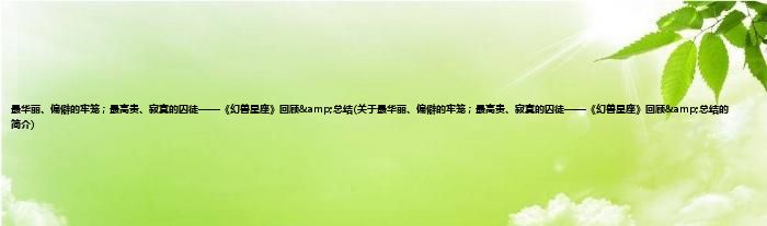 本文关于最华丽、偏僻的牢笼;最高贵、寂寞的囚徒——《幻兽星座》回顾&总结的简介就讲解完毕,希望对大家有所帮助。