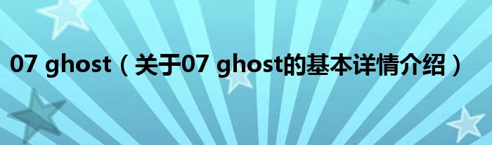 本文关于07 ghost的基本详情介绍就讲解完毕,希望对大家有所帮助。
