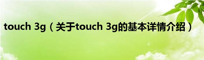 本文关于touch 3g的基本详情介绍就讲解完毕,希望对大家有所帮助。