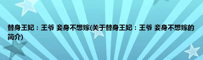 替身王妃:王爷妾身不想嫁(关于替身王妃:王爷妾身不想嫁的简介)