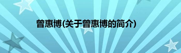 本文关于曾惠博的简介就讲解完毕,希望对大家有所帮助。