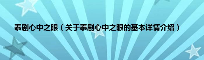 本文关于泰剧心中之眼的基本详情介绍就讲解完毕,希望对大家有所帮助。