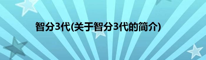 智分3代(关于智分3代的简介)