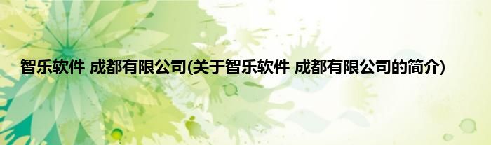 智乐软件 成都有限公司(关于智乐软件 成都有限公司的简介)