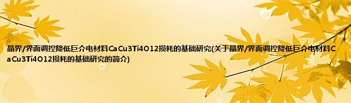 本文关于晶界/界面调控降低巨介电材料CaCu3Ti4O12损耗的基础研究的简介就讲解完毕,希望对大家有所帮助。