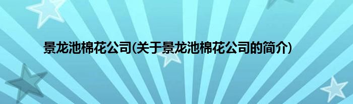 本文关于景龙池棉花公司的简介就讲解完毕,希望对大家有所帮助。
