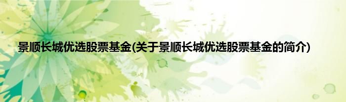 大家好,景顺长城优选股票基金,关于景顺长城优选股票基金的简介很多人还不知道,现在让我们一起来看看吧!