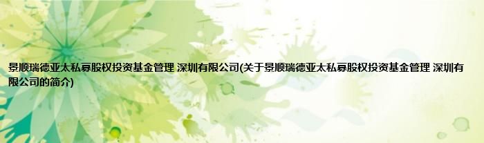 大家好,景顺瑞德亚太私募股权投资基金管理 深圳有限公司,关于景顺瑞德亚太私募股权投资基金管理 深圳有限公司的简介很多人还不知道,现在让我们一起来看看吧!