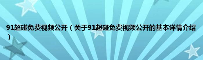 本文关于91超碰免费视频公开的基本详情介绍就讲解完毕,希望对大家有所帮助。