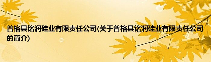 普格县铭润硅业有限责任公司(关于普格县铭润硅业有限责任公司的简介)