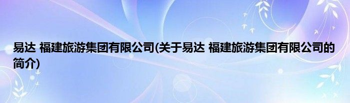 易达 福建旅游集团有限公司(关于易达 福建旅游集团有限公司的简介)