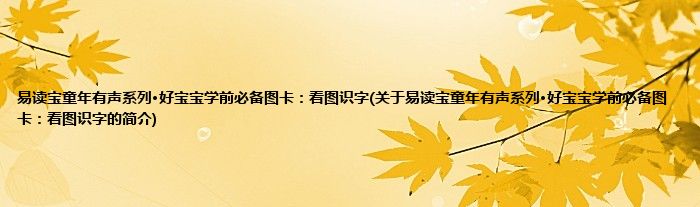 本文关于易读宝童年有声系列·好宝宝学前必备图卡:看图识字的简介就讲解完毕,希望对大家有所帮助。