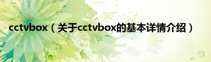 本文关于cctvbox的基本详情介绍就讲解完毕,希望对大家有所帮助。