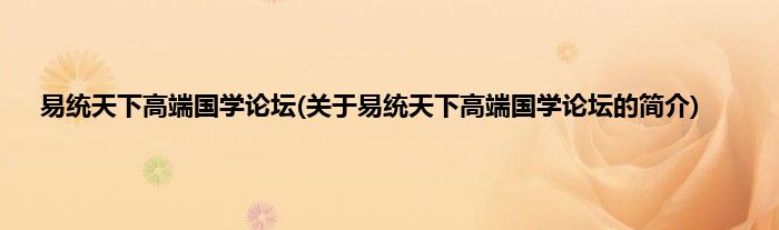 本文关于易统天下高端国学论坛的简介就讲解完毕,希望对大家有所帮助。