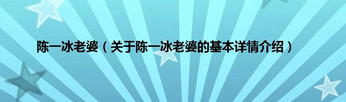 本文关于陈一冰老婆的基本详情介绍就讲解完毕,希望对大家有所帮助。