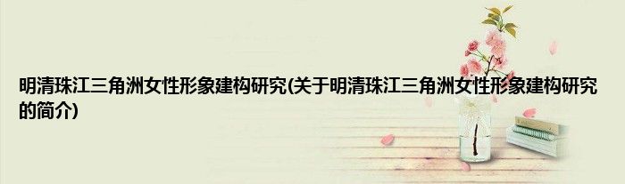 本文关于明清珠江三角洲女性形象建构研究的简介就讲解完毕,希望对大家有所帮助。