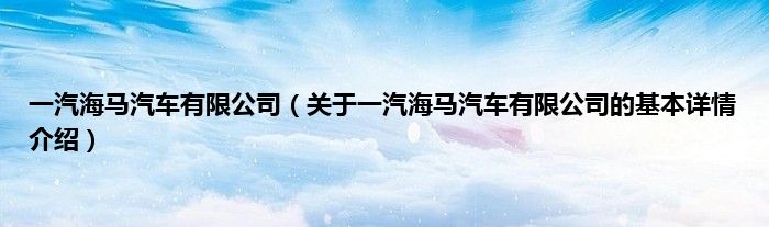 本文关于一汽海马汽车有限公司的基本详情介绍就讲解完毕,希望对大家有所帮助。