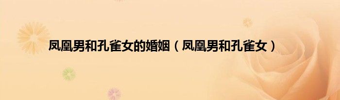 以上就是【凤凰男和孔雀女的婚姻,凤凰男和孔雀女】相关内容。