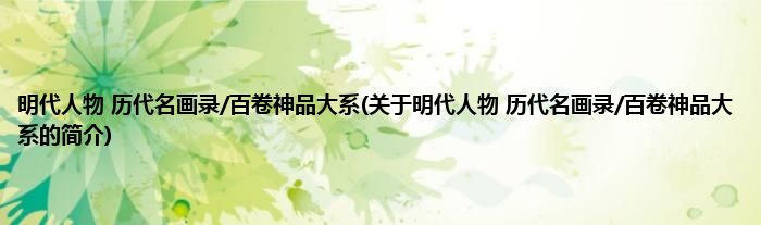 本文关于明代人物 历代名画录/百卷神品大系的简介就讲解完毕,希望对大家有所帮助。