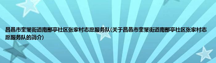 昌邑市奎聚街道南鄑亭社区张家村志愿服务队(关于昌邑市奎聚街道南鄑亭社区张家村志愿...