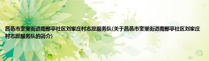本文关于昌邑市奎聚街道南鄑亭社区刘家庄村志愿服务队的简介就讲解完毕,希望对大家有所帮助。