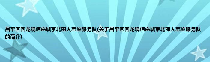 昌平区回龙观佰嘉城京北丽人志愿服务队(关于昌平区回龙观佰嘉城京北丽人志愿服务队的...