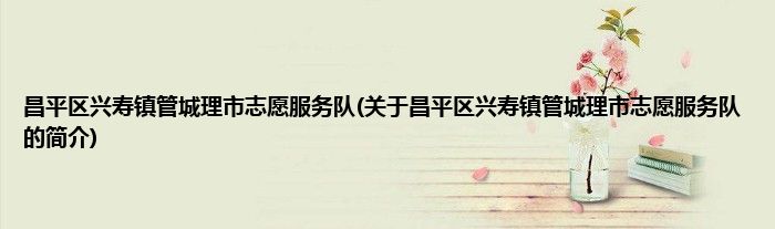 昌平区兴寿镇管城理市志愿服务队(关于昌平区兴寿镇管城理市志愿服务队的简介)